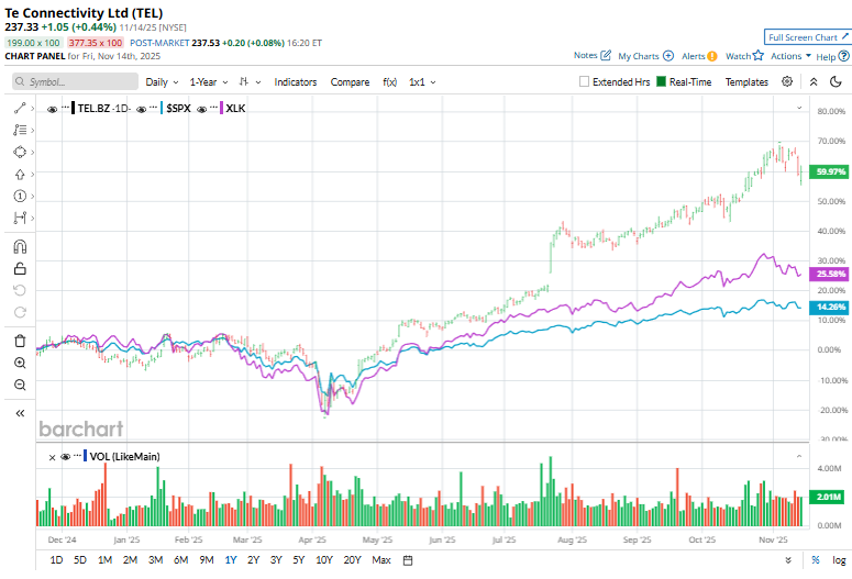 Shares of the company have outpaced the broader market over the past 52 weeks. TEL stock has increased 54.9% over this time frame, while the broader S&P 500 Index ($SPX) has rallied 13.2%. Moreover, the stock is up nearly 66% on a YTD basis, compared to SPX's 14.5% gain.