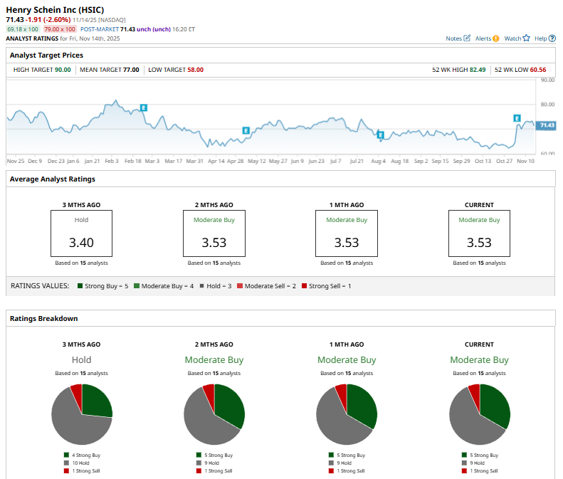 On Oct. 14, Leerink Partners analyst Michael Cherny reaffirmed his “Hold” rating on Henry Schein and maintained a $71 price target.